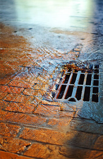 Emergency response for properties experiencing water pooling in yards, driveways, or near buildings due to blocked surface drains or strip grates.